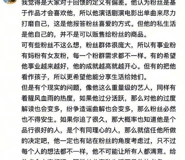 其实大部分人追星,要的就是一个情绪价值。 如果这些都提供不了,那么脱粉也只是迟早的事情。 但也有人辩解,认为提供情绪价值并非是一个“演员”应该做的事情,那是爱豆做的。