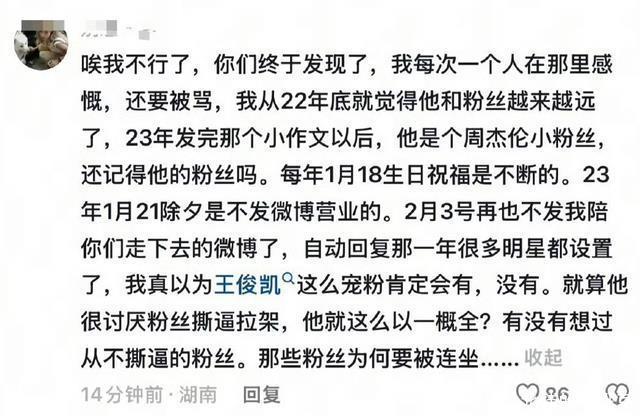 希望王俊凯能好好啊想想这个问题。 大家脱粉不是无缘无故的,既然提供不了情绪价值,就要承担这个后果。